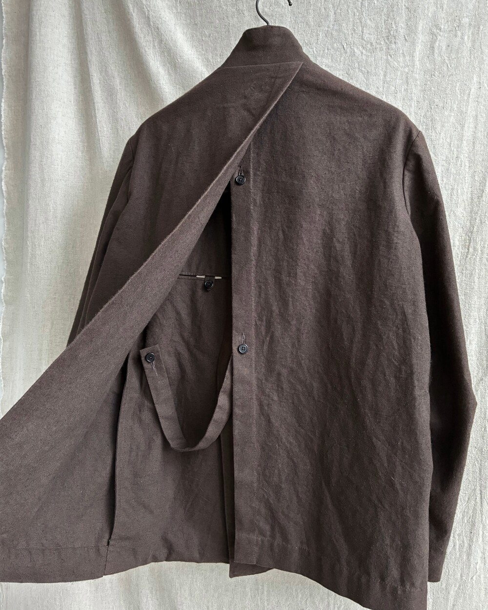 This tailored jacket is constructed by simply two body pieces overlapped.